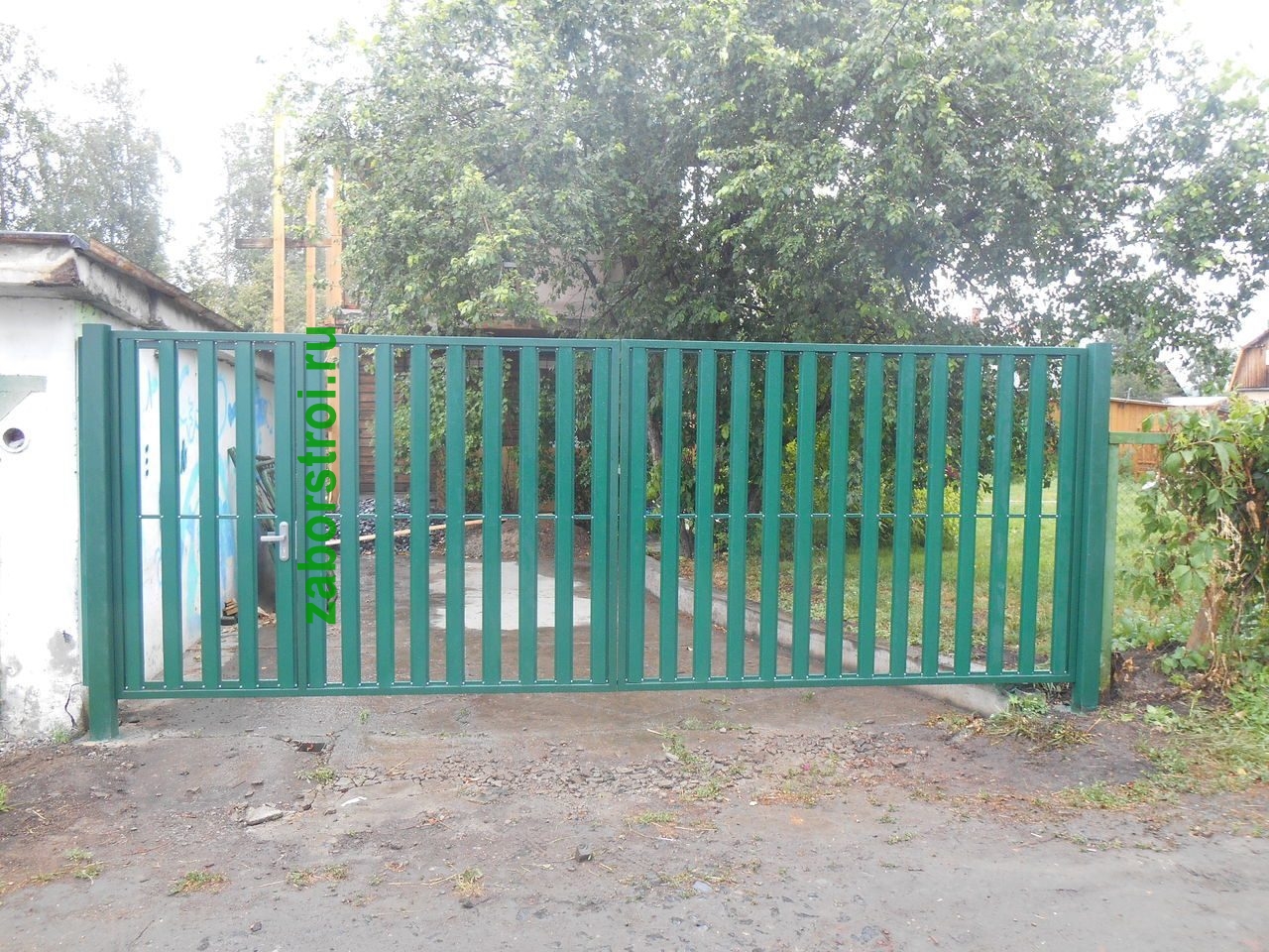 Ворота из евроштакетника распашные пример 5